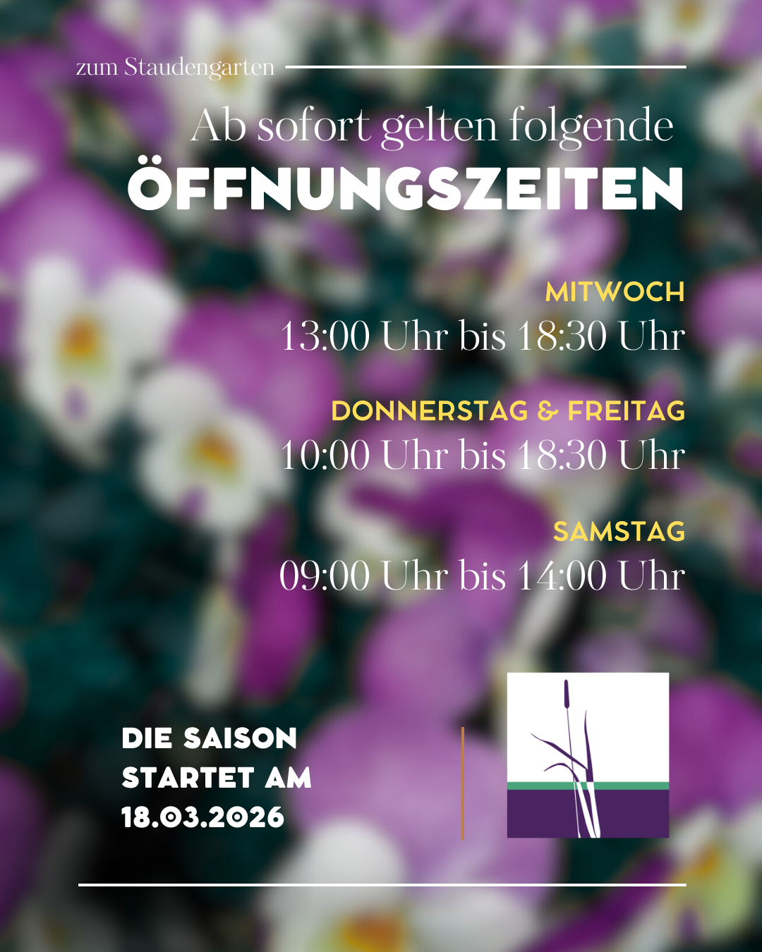 Wir freuen uns auf Sie und Ihren Besuch im Staudengarten und auf Ihre Fragen zu Altbewährtem und Neugedachtem und darauf, Sie individuell zu Ihren Gärten, Beeten und Balkonen zu beraten!